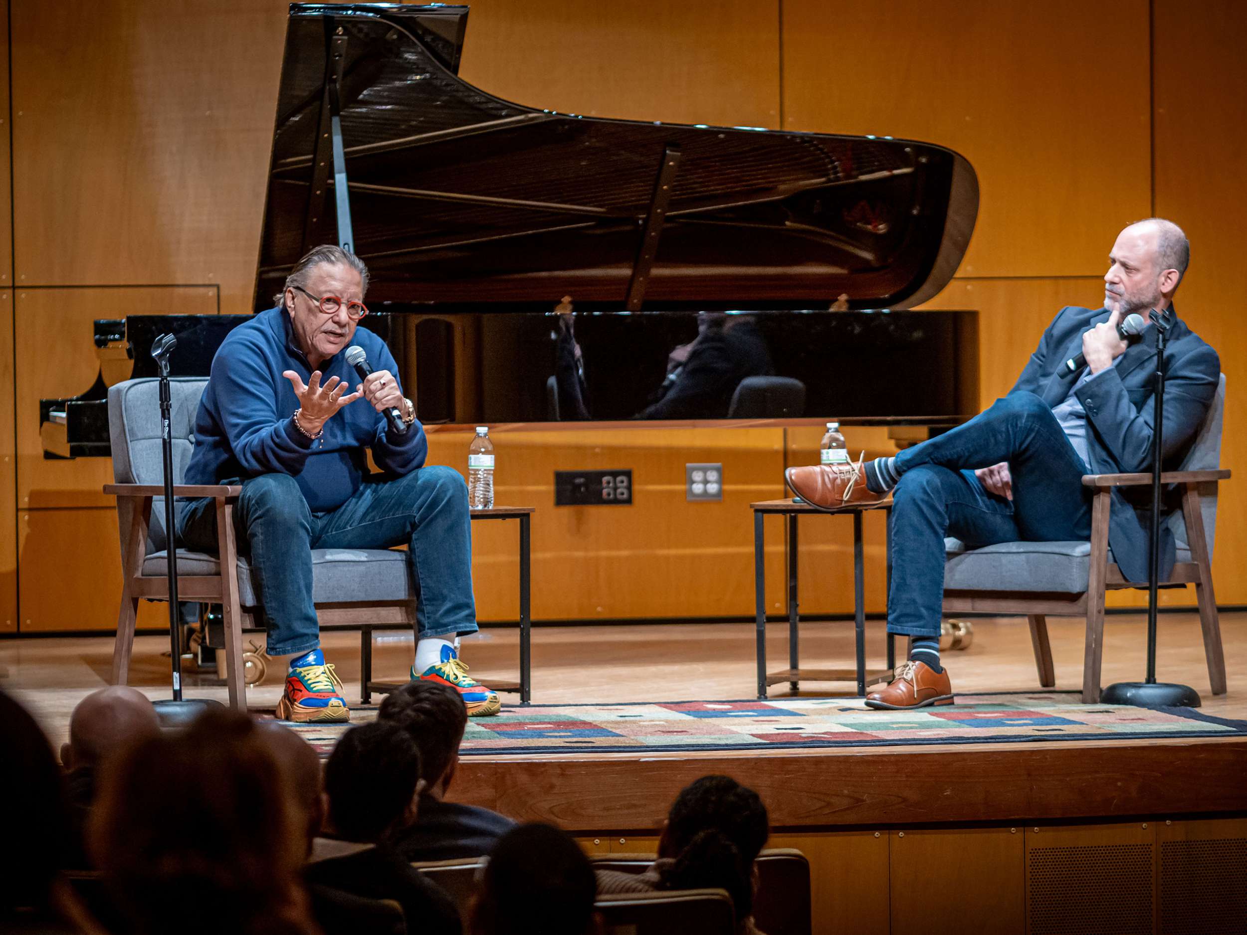 In the evening, Sandoval joined Cali School Director Mazzocchi for a conversation that included an exploration of the musician’s Cuban roots and an unexpected improvisation on the grand piano in Leshowitz Recital Hall.