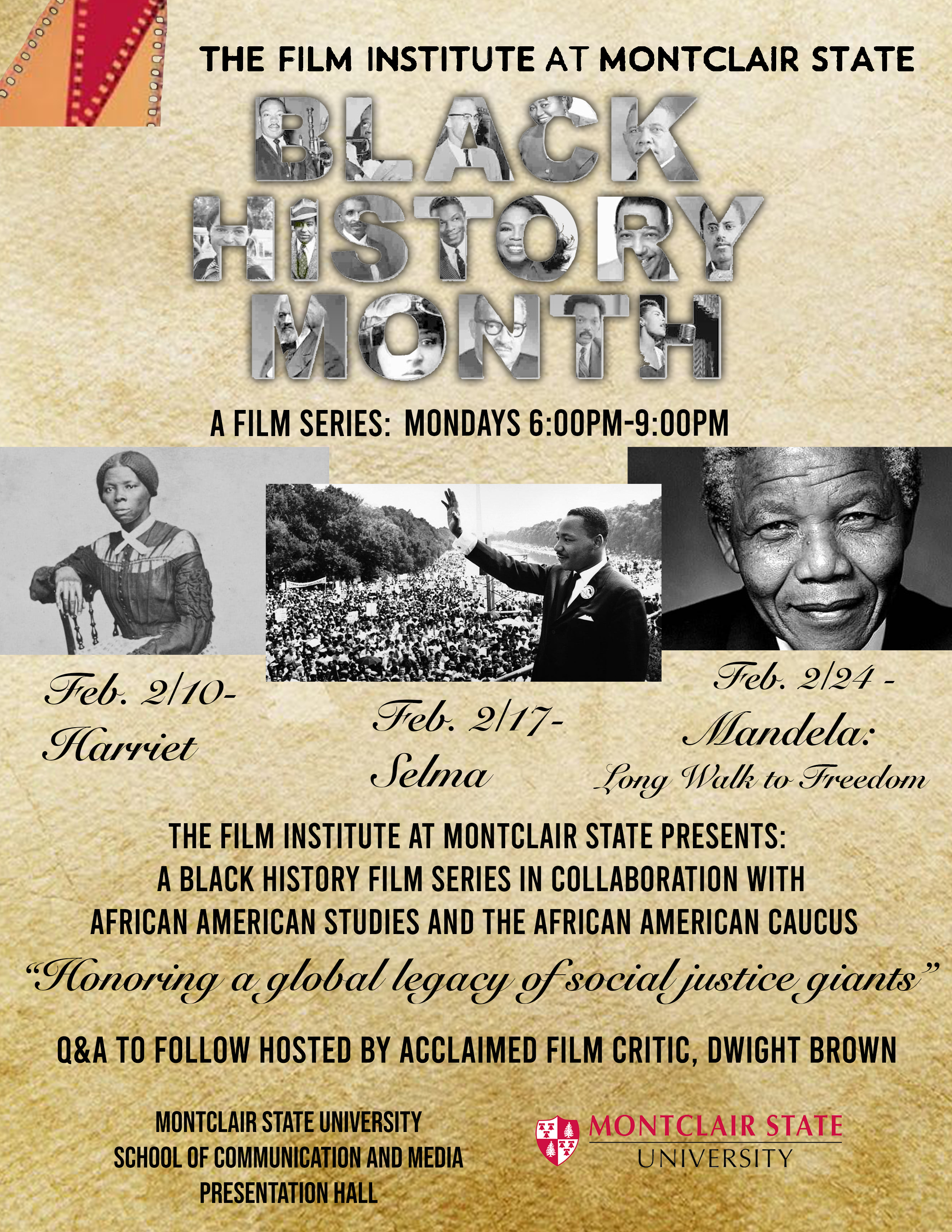 January 30, 2020 Black History Month Film Series Posted in: Events The African American Caucus is proud to present this film series in collaboration with the Film Institute at Montclair State. Reserve your seat for these films here.