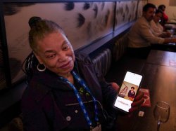 Briana Curtis, Associate Director of Alumni Engagement, connects with an alumnus on the convention floor.