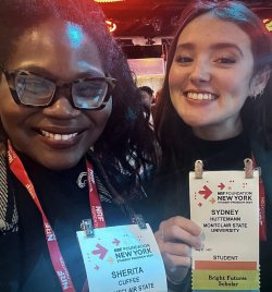 Fashion Design and Merchandising Adjunct Professor Sherita Cuffee, attends The National Retail Federation Foundation Student Conference with senior Sydney Huttemann who was awarded the Bright Future Scholarship.