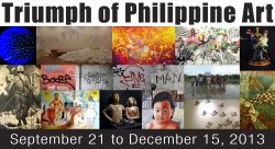 The works selected for “Triumph of Philippine Art” fall into categories including Figurative Expressionism and Social Realism, Feminism, A New Generation in the 21st Century, and Conceptual Art and demonstrate the varied and distinctive imagery that represents Philippine contemporary art. Artists being featured are: Leo Abaya, Benedicto “BenCab” Cabrera, Buen Calubayan, Ernest Concepcion, Mideo Cruz, Imelda Cajipe-Endaya, Brenda Fajardo, Karen Ocampo Flores, Michael Rodriguez Gomez, Gregory Raymond Halili, Mark Orozco Justiniani, Julie Lluch, Athena Santos Magcase-Lopez, Racquel De Loyola, Renan Ortiz, Christina Quisumbing Ramilo, Mark Salvatus and Pablo Baen Santos.