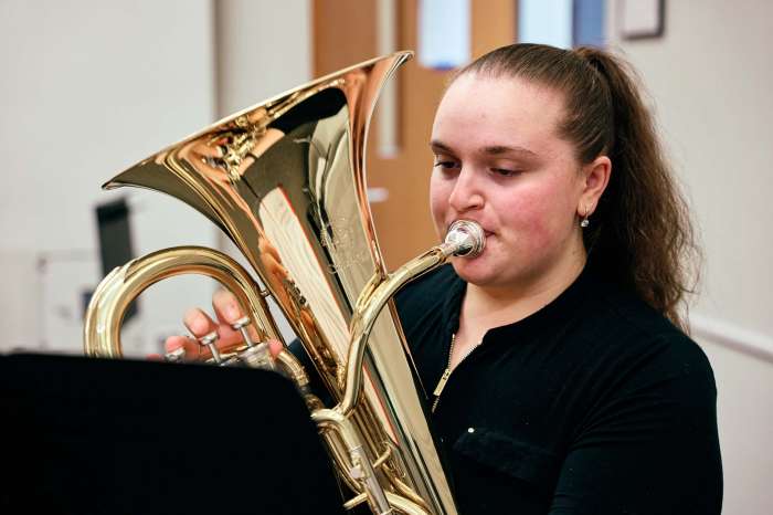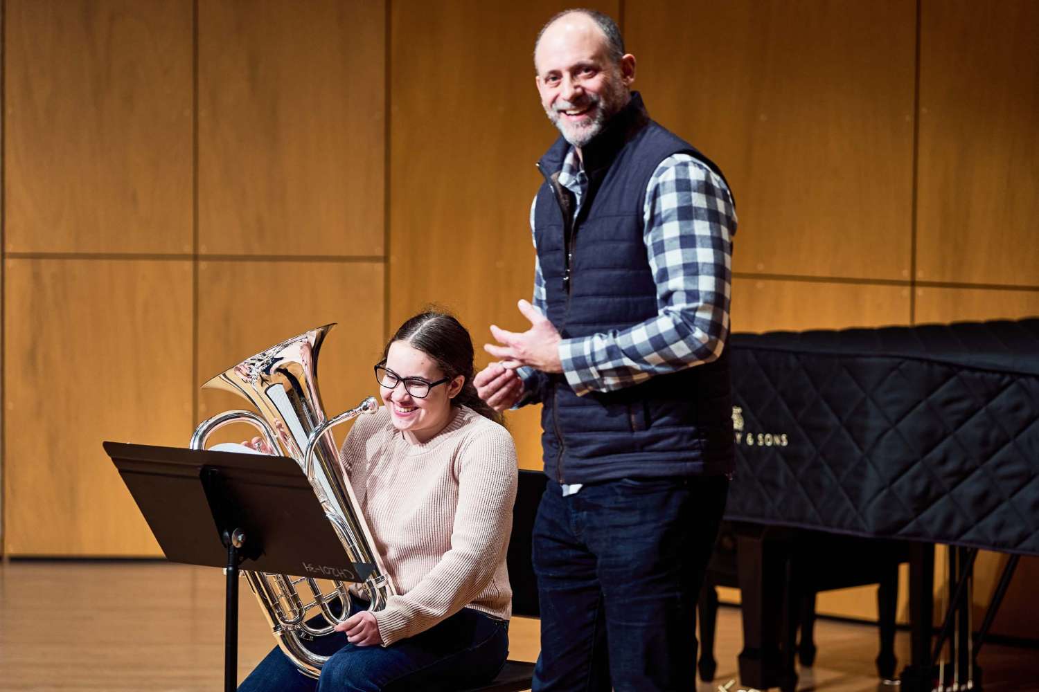 Victoria Ortega, a freshman Music Education major, learned of the program from a teacher while helping to set up the band room in her Staten Island, New York, high school. “They can provide you with lessons, they can provide you with an instrument, they can provide tuition assistance,” Ortega recalls the conversation. “I had to submit a video of myself playing so I used a clip of me playing a solo on the euphonium.”
