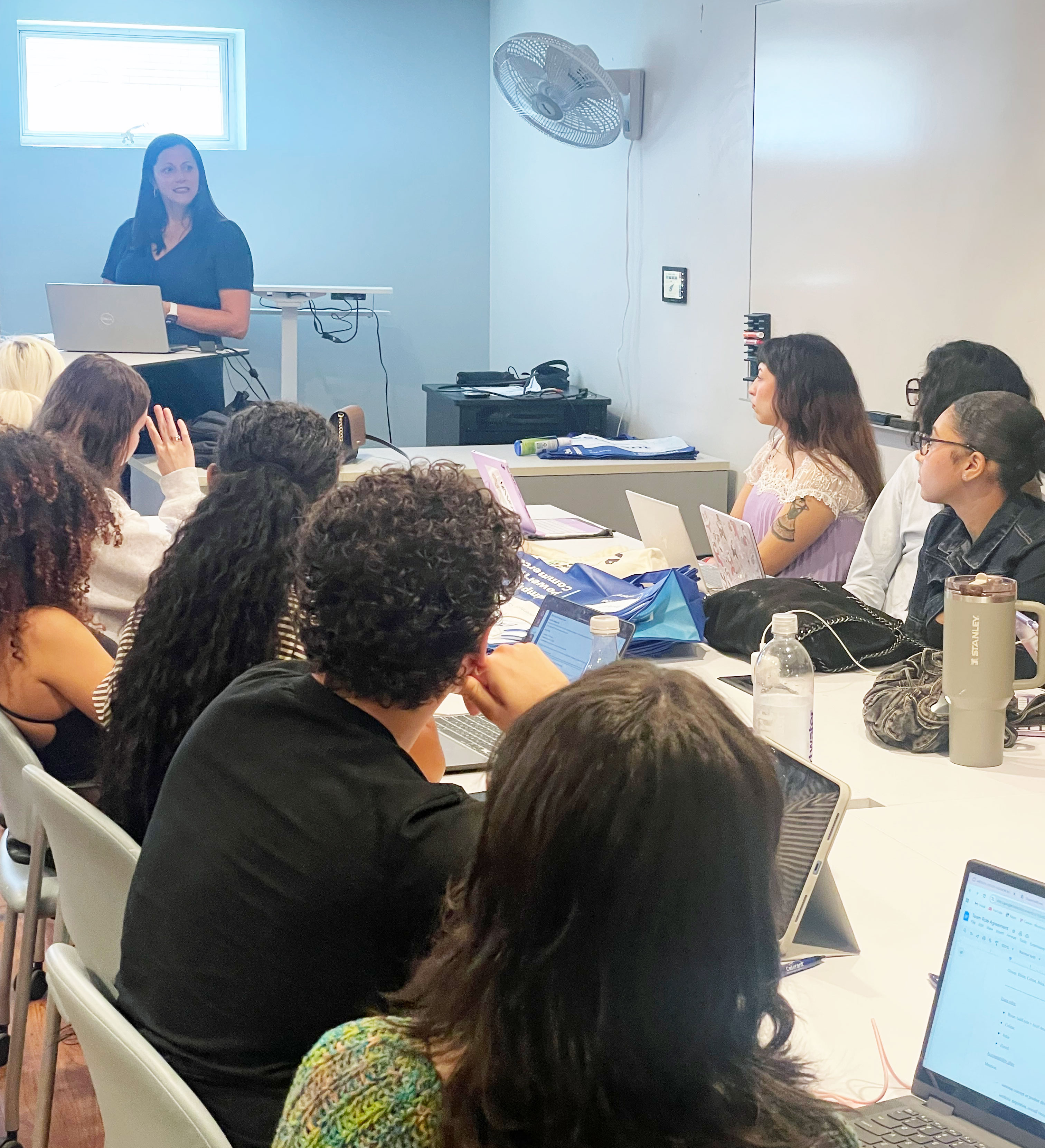 Drawing on her extensive experience leading marketing and growth strategy in the retail technology sector, Salerno offered students an inside look at how innovation, data, and storytelling intersect in today’s fashion industry. Her presentation, “Real-World Strategy: How AI is Changing the Game,” explored how brands can stay visible and competitive in an increasingly digital marketplace.