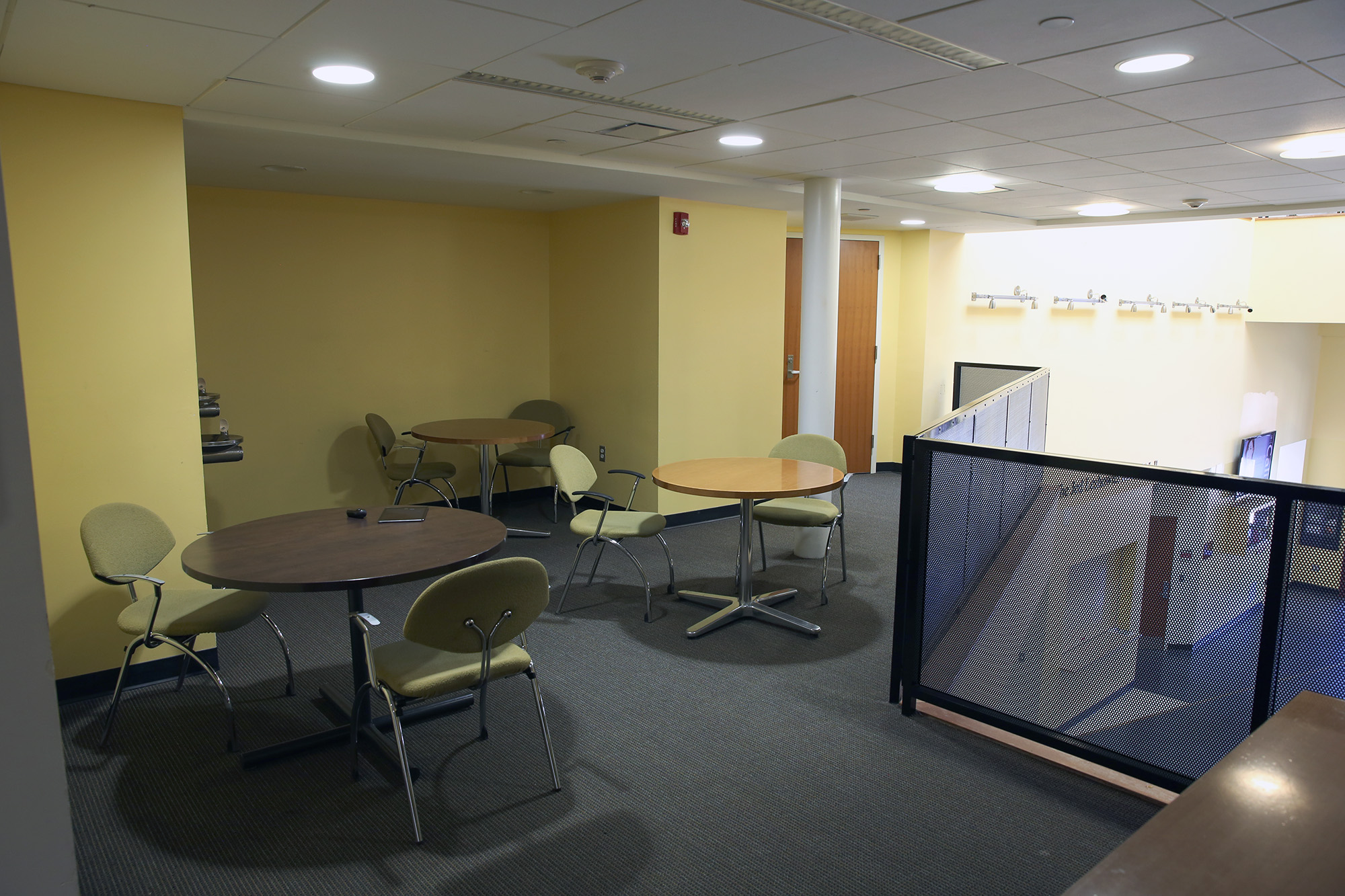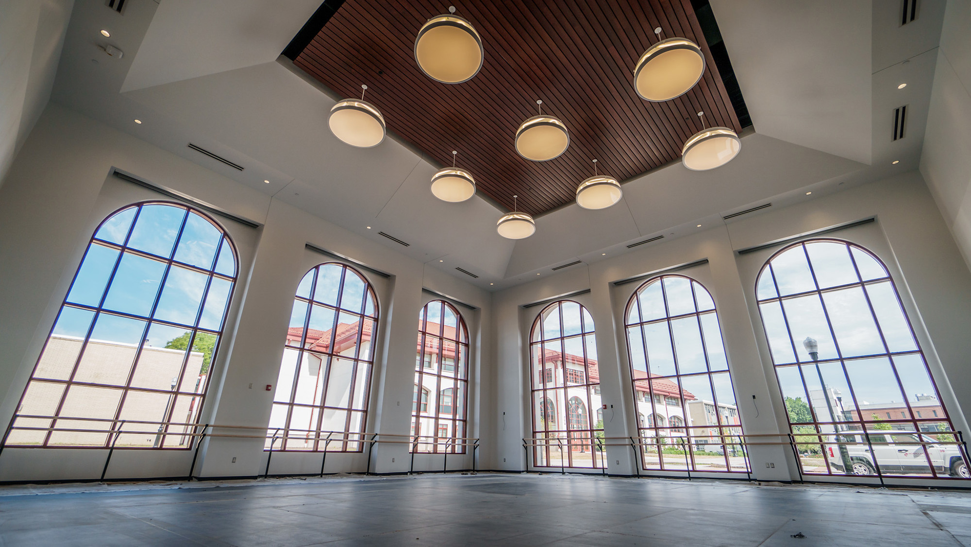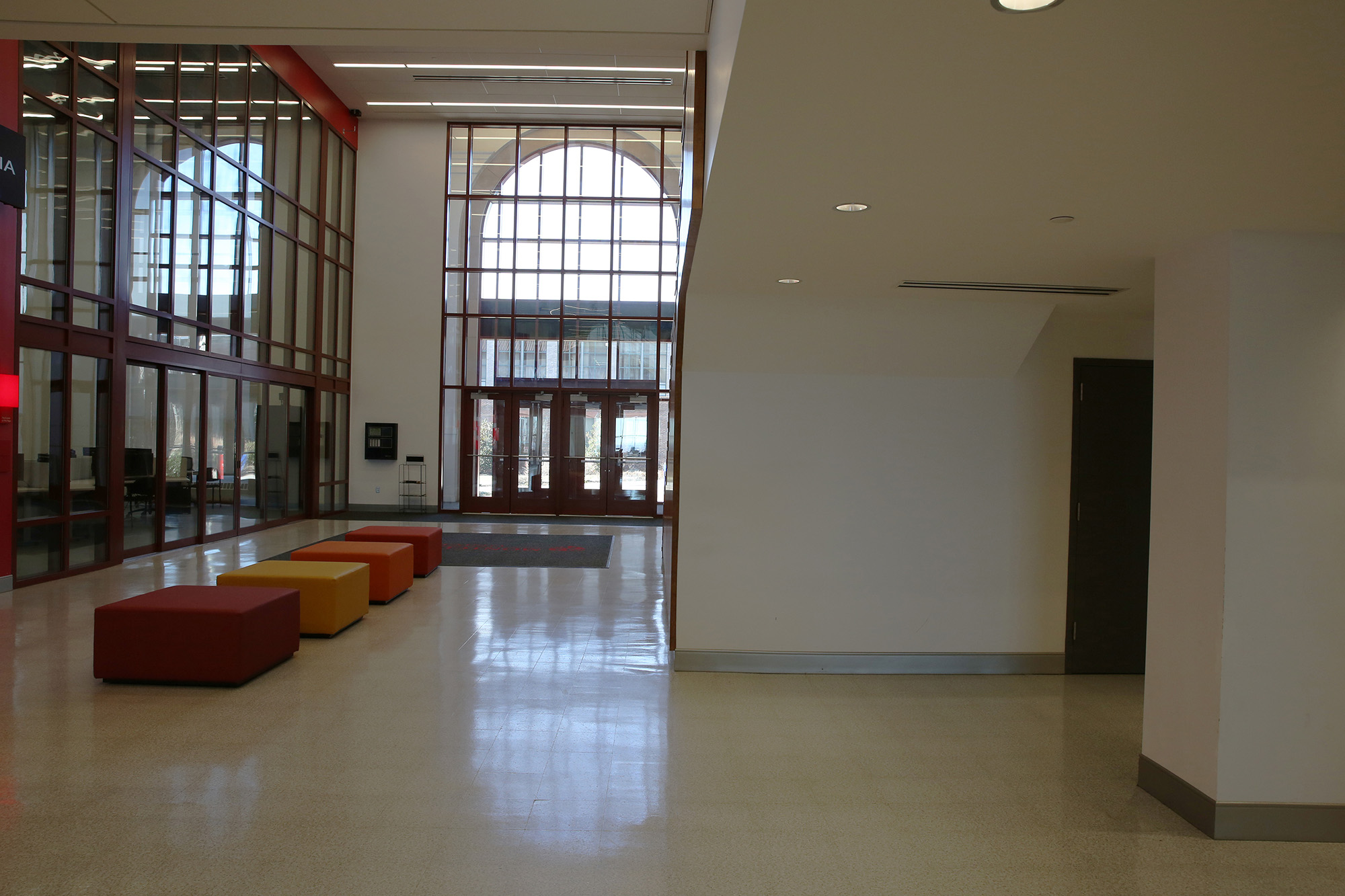 Home of the College’s Cali School of Music, Chapin Hall houses spaces for instruction and performance. Its three-story lobby allows natural light to filter to the ground floor ticket booth.