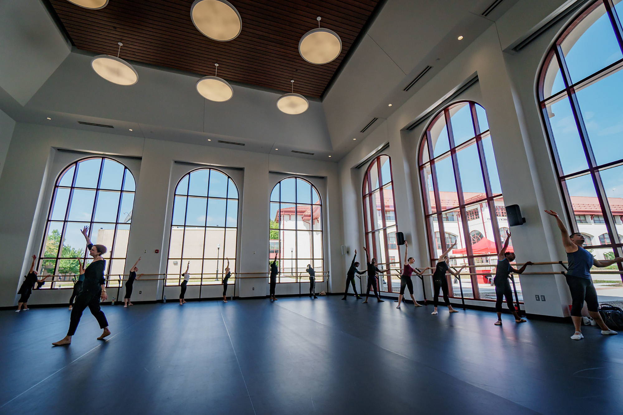 This modern, multi-purpose dance studio boasts large windows which allow ample natural light to fill the room. Part of the Department of Theatre and Dance, this space complements our on-campus performance venues as a locale for rehearsals and teaching laboratories.