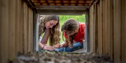 students checking to see what animals used wildlife crossing