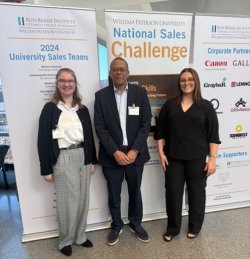 Feliciano School of Business students Colleen Sullivan (Business Relationships & Professional Selling Minor) and Peyton Kinney (Marketing) proudly represented the Feliciano School of Business at the 2024 National Sales Challenge, the premier collegiate sales competition hosted annually by the Russ Berrie Institute of Professional Sales at William Paterson University. This prestigious event draws top students from national and international universities to compete, showcasing their selling skills to business executives who serve as judges, recruiters, and mentors.