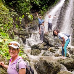 Students at waterfall in jungle