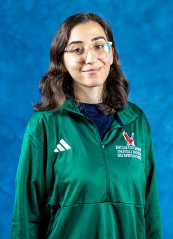 Exterior shot of the Student Recreation Center from the ground up on a sunny day