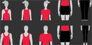 Athletic bottoms: shorts, pants, leggings, skorts.