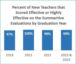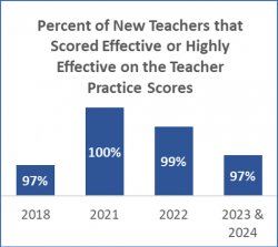 - 97% received Teacher Practice Scores of “Highly Effective” or “Effective”.