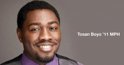 Boyo chose the Master of Public Health program because it accommodated his full-time job and he felt that the faculty in the program would “truly invest in my development and create a learning environment that encouraged my ambitions and ability to thrive.”
