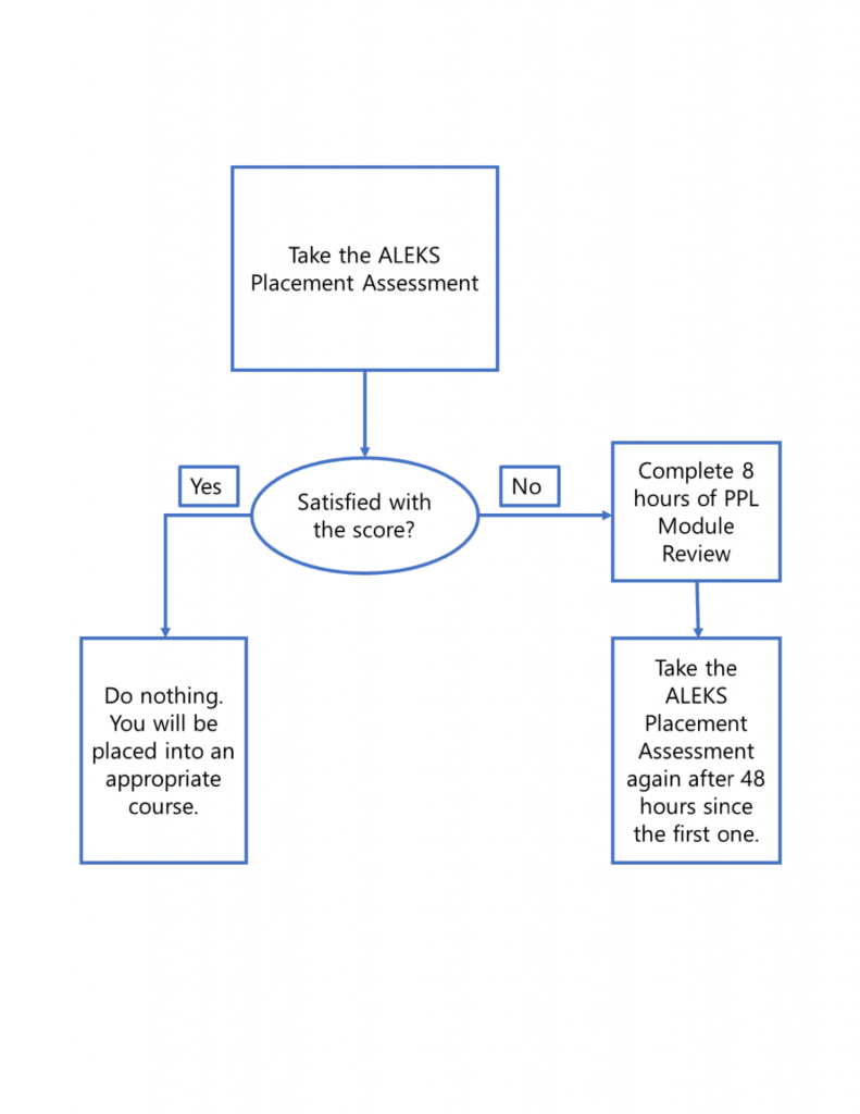 When do I take the ALEKS PPL Assessment? It is highly recommended that students take the placement assessment as soon as they are admitted. This will help advisors place you into the right math course. The ALEKS account allows Prep and Learning Modules to be used to improve the assessment score before taking the assessment a second time. We also suggest that the student takes the recommended math course soon after completing the assessment so the material is still fresh.