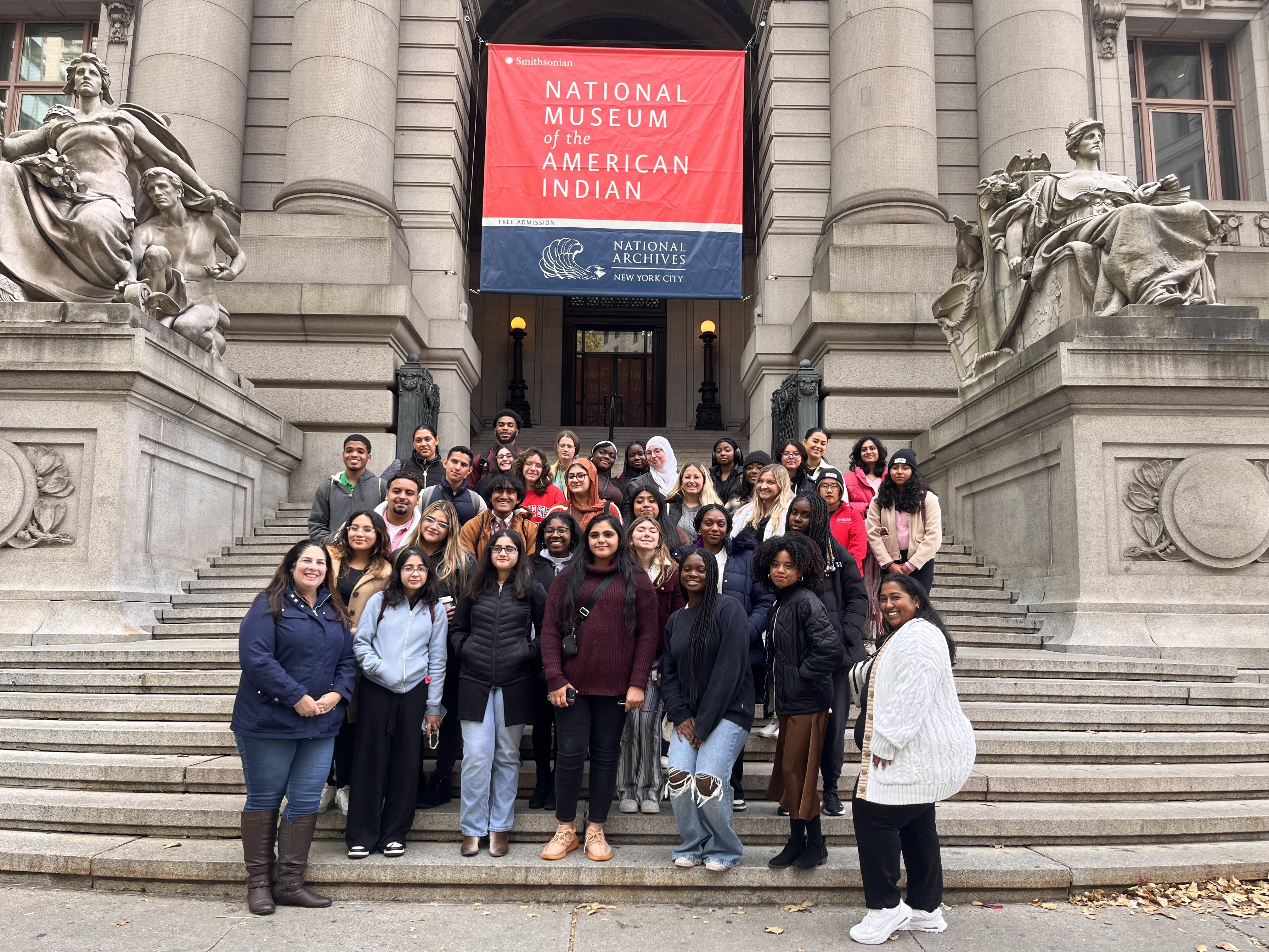 NextGen students and staff posing on the steps of a museum.