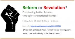 This discussion is part of the South Asian Feminist Caucus’ ongoing Zoom series, “Love and Solidarity in the Time of Corona”