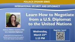 Rebecca Webber Gaudiosi, PhD. will speak on “Solving Global Policy Challenges: Five Lessons in Multi-Stakeholder Negotiations”