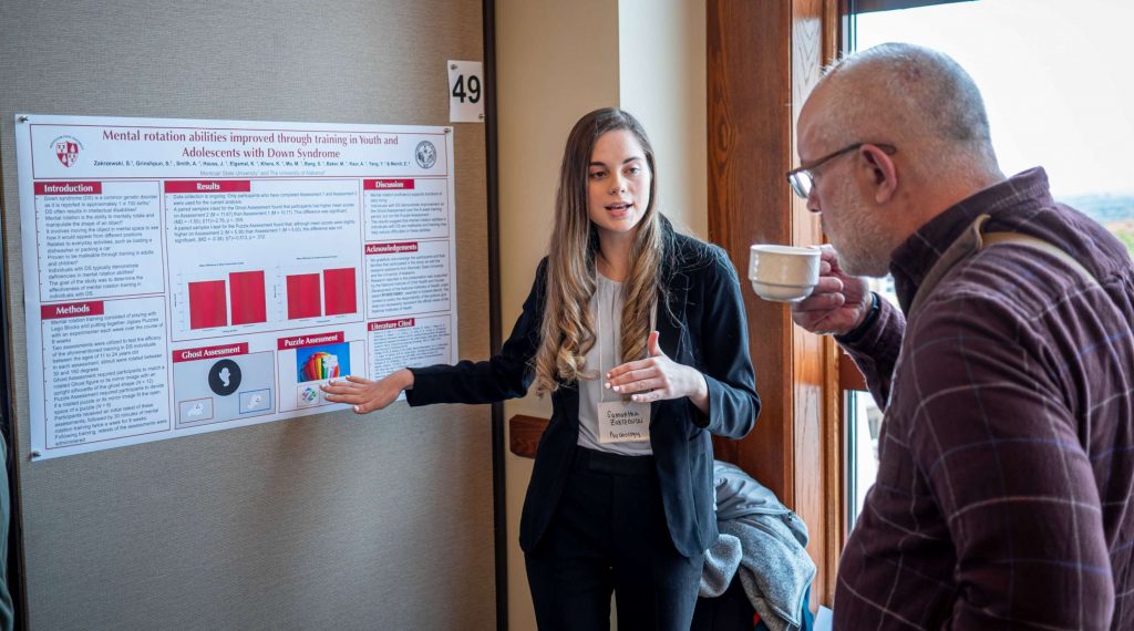 The students presented their research in four poster presentation sessions that provided students the opportunity to showcase their research questions, methods and conclusions on Wednesday, April 26 in the University Hall Conference Center.