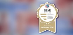 At the 2020 ALL IN Challenge Awards Ceremony held to recognize colleges and universities committed to increasing college student voting rates, Montclair State University received a gold seal for achieving a student rate between 70% and 80%.