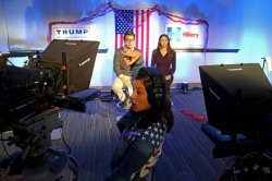 Other students are preparing to skype with our partners at Bournemouth University in England, where Montclair State is part of a one-of-a-kind international student project that is covering the U.S election on multiple platforms. Ten seconds to airtime. The students from the Carpe Diem class, who have been rehearsing for this special live broadcast, are counting down the anchors.