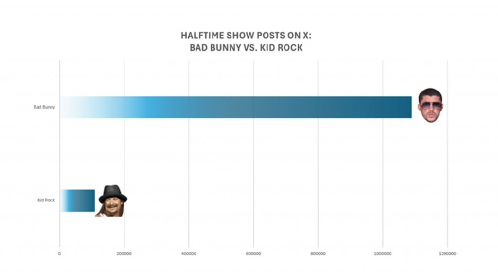 • 892.8% more posts on X about Bad Bunny’s halftime show performance