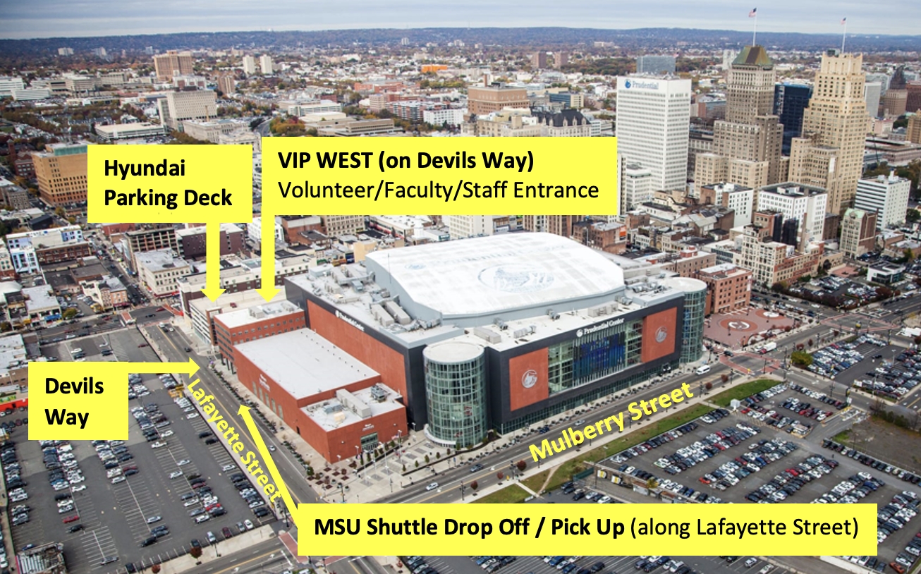 Parking permits are valid for the Hyundai Deck (15 Lafayette Street). Parking permits will be distributed to those have registered and requested parking. Please place the parking permit on your dashboard for collection by parking attendants. Parking is limited and we anticipate heavier than normal traffic in Newark and around Prudential Center. It is strongly suggested that all faculty and staff register for the complimentary shuttle service to and from Prudential Center.