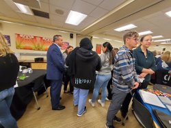 Dr. Ann Marie Olson organized a hearing aid health fair as part of CSND 706 which was open to all CSND students. Representatives from seven leading hearing aid manufacturers including Resound, Oticon, Phonak, Signia, Starkey and Unitron, showcased cutting-edge technology. Students had the opportunity for in-depth discussions with each manufacturer’s representative during the informative event.