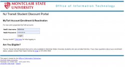 - Log into to Montclair State’s NJ TRANSIT Student Discount monthly pass page (the page where you initially went to enroll).