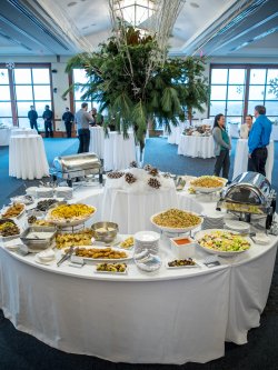 Non-University funded events are subject to a University surcharge and sales tax. A 75% deposit is required three (3) weeks prior to your event, with your menu selections. Balance is due at the event’s conclusion. Credit cards will be processed five (5) business days prior to the event for pre-authorization. Tax-exempt organizations are required to submit a copy of their exemption certificate at time of booking, prior to their event date. Balance due on day of event.