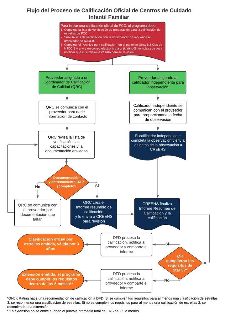 - Completar ‘File for Rating’ en la consola de Grow NJ Kids en NJCCIS y mandar un correo electrónico a GNJKRating@montclair.edu para notificar que su presentación se ha completado