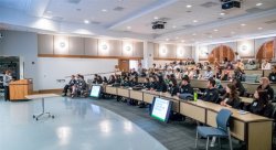 The teams will reconvene at Montclair State on August 4 to present the results of their respective assignments. As they officially begin helping to ensure a sustainable New Jersey, Montclair State Vice President for University Advancement Jack Shannon provided a strong message to the corporations in attendance.