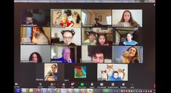 screenshot of a Zoom call with smallers quares of particpant video. Some particpants have cats or are wearing cat ears