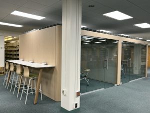 - Converting Suite 250 space to accommodate six new staff. We will be building three private workspaces using a furniture wall system in 250A and three open workstations in 250, along with a meeting table and workspace.