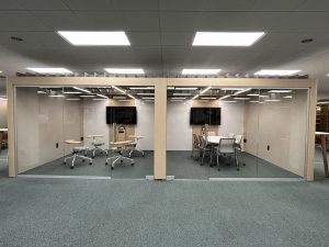 - Study Pods – Three new freestanding group study pods have been installed in the library. Two on the 1st floor in Research & Reference Services and one on the 2nd floor. New AV and furniture have also been installed.
