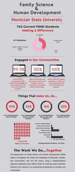 The Department of Family Science and Human Development (FSHD) seeks to strengthen the health and wellbeing of individuals, families, and communities, over the life course, using a multidisciplinary approach, especially those efforts aimed at reducing social inequities. Central to our mission is an unwavering commitment to inclusion and social justice.