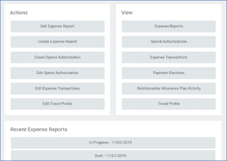 Employees can locate, view, and edit their Spend Authorizations and Expense Reports by clicking on the Expenses application icon, and selecting the appropriate action in the Expenses Dashboard.
