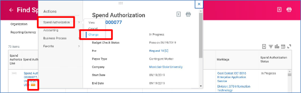 5) Hover over the Spend Authorization field, and click on the twinkie for the Actions menu.