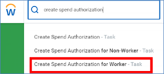 1) Enter Create Spend Authorization for Worker into the Search bar and select it from the search results.