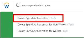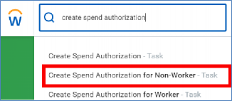 1) Enter Create Spend Authorization for Non-Worker into the Search bar and select it from the search results.