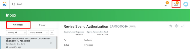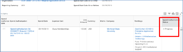 4) Locate the line for spend authorization with the Spend Authorization Status of In Progress.