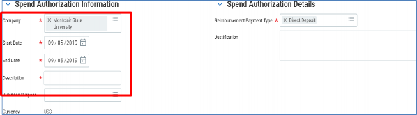 2) From the Create Spend Authorization screen, go to the Spend Authorization Information section