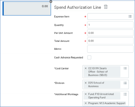 ● Memo: Enter additional information to those processing the Spend Authorization. This field is optional.