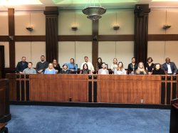 The group also visited the US District Court for the District of New Jersey in Newark and was welcomed by the Honorable Patty Shwartz, Court of Appeals Judge for the Third Circuit, and the Honorable Julien X. Neals, United States District Judge for the District of New Jersey and their staff. Both judges took extensive time out of their day to speak to the students about the federal court system and human trafficking cases in particular. In addition to the individual sessions with both judges, we were also invited to sit in on a sentencing hearing, which was quite an experience for our Austrian visitors.