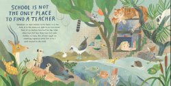 Becoming a Good Creature is an abridged version of Montgomery’s best-selling memoir, How to Be a Good Creature (2018), retooled for a younger audience. The book outlines a series of encounters she has had with animals: both domestic (her pet pig named for conductor Christopher Hogwood; her border collie, Thurber, with one blind eye) and wild (the emu family she follows in Australia; the gorillas she meets in Zaire). Montgomery titles each section of the picture book with a moral lesson she has learned from her interactions with other species, such as “Love Little Lives,” “Don’t Be Afraid,” and “Make Your Own Family.” This is not, however, a morally didactic move on her part; to simply extract the lessons and leave the anecdotes is to miss the keystone of what holds the larger structure of the book together. Rather, Montgomery frames each of these lessons as predicated on our receptivity to other lives. Our willingness to be attentive to other creatures – not just the ones like us with “two legs,” but also “four or even eight” – opens up the possibility of finding something ethically significant in these encounters. She tells us that “all have taught me something important about how to be a good creature in the world.”