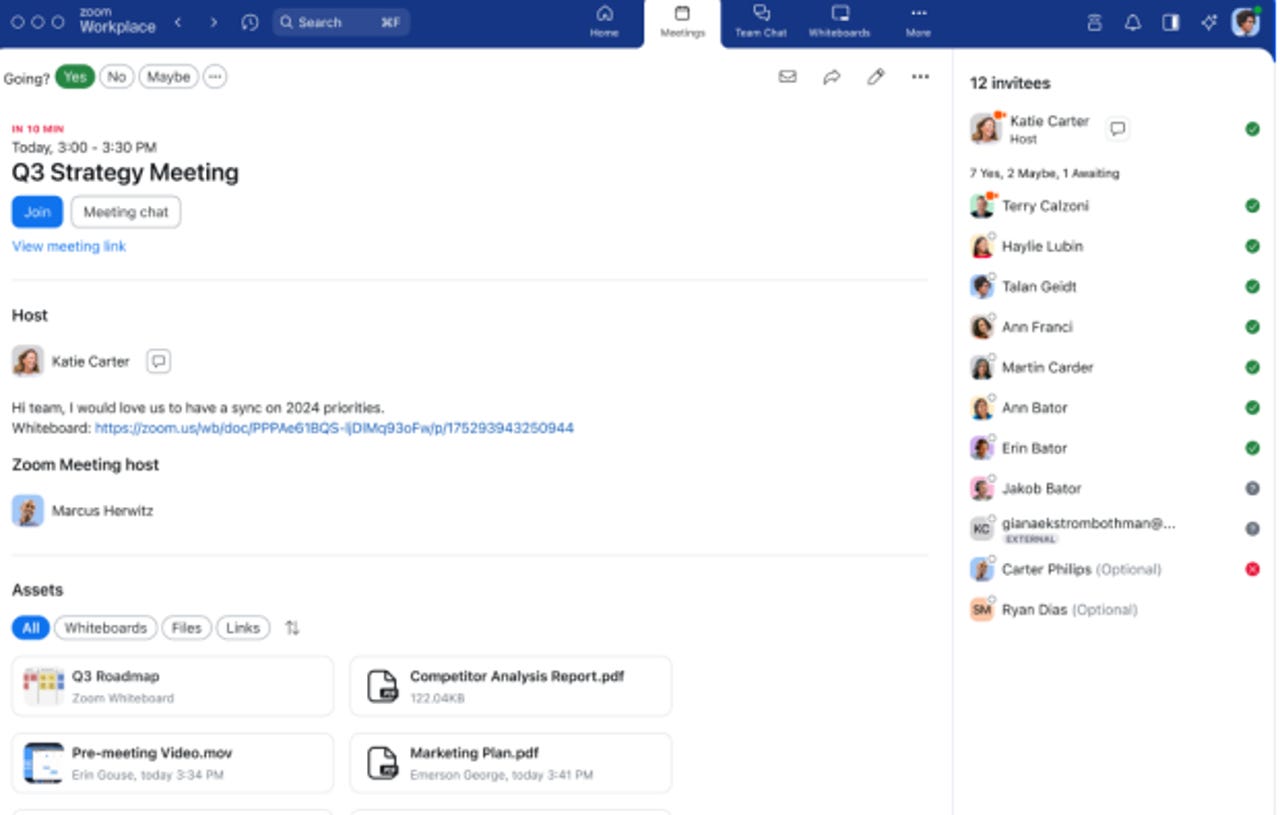 - Meetings and Calendar Integration: Want a seamless connection between your calendar and meetings? Zoom Workplace lets you combine them into one tab. You’ll have both a traditional calendar view and a new agenda view at your fingertips.