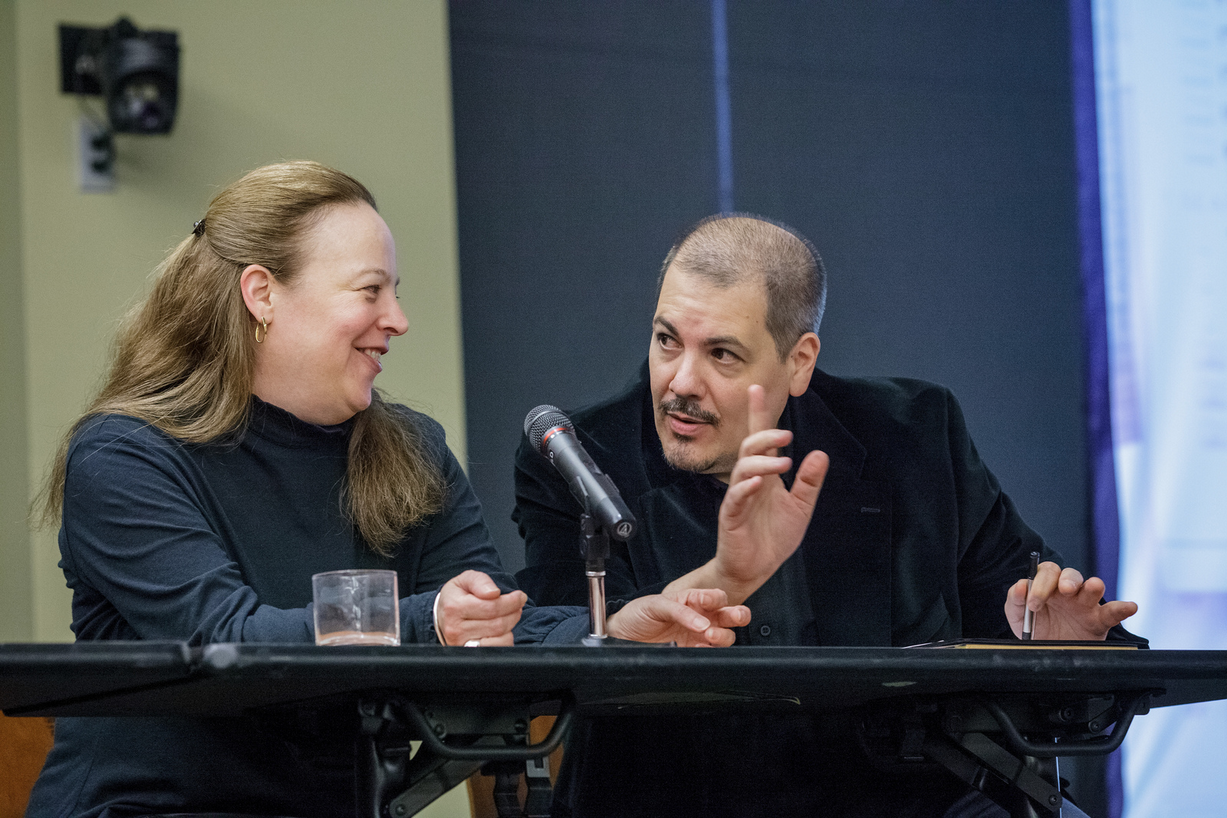 Organized by the Inserra Chair in collaboration with the Coccia Institute for the Italian Experience in America and with the Amici della Cultura Italiana Club, the meeting with these directors and producers illustrated the various steps of their creative journey during a lively discussion moderated by Professors Teresa Fiore (Dept. of Spanish & Italian), who is teaching ITAL345 “Italian Americans in Film” this semester, and Roberta Friedman (Filmmaking Program), the coordinator of Film Forum on campus.