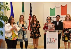 The BIS2 project was presented at the headquarters of the Italian Trade Commission in Manhattan, on occasion of a very successful celebration of the Italian culture and food on June 2, during the celebration of the National Day of the Republic of Italy. Dr. Fiore and Dr. Antenos presented the project, accompanied by students involved in each group conducting the interviews. A new summer internship with ITA was also launched.