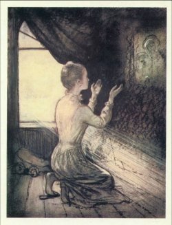 Image: I. Glazunova, “Sofya Ivanovna Karamazova before a Mother of God icon.” From Dostoevsky’s The Brothers Kazamazov (1880).