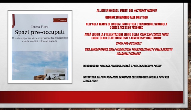 Il libro Spazi Pre-occupati: Una rimappatura delle migrazioni transnazionali e delle eredità coloniali italiane di Teresa Fiore è uscito nell’aprile 2021 nella serie “Transiti” di Mondadori Education/Le Monnier (libro disponibile in cartaceo e in digitale qui).