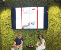Book presentation at Isola, cultural and co-working space in Catania (July 22, 2021): Cono Cinquemani (writer, moderator) on the left, Teresa Fiore (author) on the right.