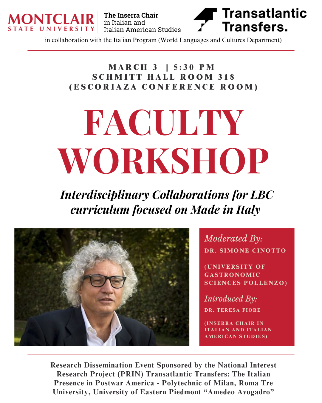 Dr. Cinotto’s on-campus visit is organized and sponsored by the Inserra Endowed Chair in Italian and Italian American Studies in collaboration with the Italian Program (Department of World Languages and Cultures), and the Department of History (Public and Digital History Program) at Montclair State University.